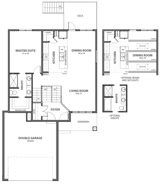 Walking up to a covered verandah creates a sheltered and private entryway that leads to a large split-entry foyer which joins up with the front garage entrance. The open concept main floor combines living, dining and kitchen areas, perfect for entertaining a crowd. The main level master and ensuite allows for a large, separated living space from the two upper and two lower bedrooms. Two bedrooms above the garage share a full bath, and the 2 bedrooms in the basement share a second full bath as well as a large family room and laundry room.